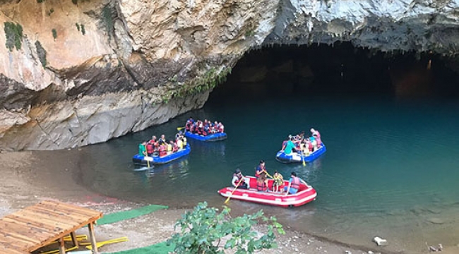 Dünyanın en güzel destinasyonlarından biri olan, Türkiye’nin en büyük Dünyanın 3. büyük yer altı gölüne sahip Altınbeşik Mağarası 9 günlük bayram tatili boyunca hizmet vermeye devam etti. gezi botları ile mağaranın güzelliklerini keşfe çıkan ziyaretçiler, Antalya’nın bu cennet köşesine hayran kaldı.