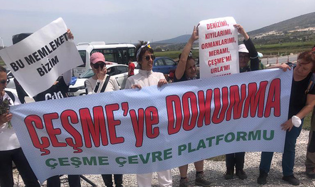İzmir'in Çeşme ilçesinde yapılması gündeme gelen ve tepkilere neden olan turizm Projesi'ne karşı eylem yapıldı. TMMOB İzmir Koordinasyon Kurulu, İzmir Tabip Odası, İzmir Barosu ve Çeşme Çevre Platformu’nun Alaçatı’da düzenlediği “Çeşme Talan Rant Projesi'ne hayır'' eylemine yüksek katılım oldu.