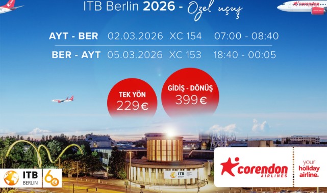 Dünya turizm sektörünün en prestijli buluşmalarından ITB Berlin 2026 için geri sayım başlarken, Corendon Airlines fuar katılımcılarına özel bir uçuş programı sunuyor. Antalya ile Berlin arasında planlanan bu özel sefer, iş dünyasının temsilcilerini fuara güvenli, konforlu ve hızlı bir şekilde ulaştırmayı hedefliyor.Turizm profesyonelleri için özel olarak oluşturulan uçuş takvimi kapsamında gidiş seferi 2 Mart 2026’da Antalya’dan Berlin’e, dönüş uçuşu ise 5 Mart 2026’da Berlin’den Antalya’ya gerçekleştirilecek. Tek yön 229 Euro, gidiş–dönüş 399 Euro olarak belirlenen biletler, www.corendonairlines.com adresi üzerinden satışa sunuldu.Corendon Airlines, ITB Berlin’e katılım planı yapan tüm sektör temsilcilerini Türkiye’den Berlin’e düzenlediği direkt uçuşun sunduğu kolaylık ve avantajları değerlendirmeye davet ediyor.Her yıl turizmin önde gelen kurumlarını, profesyonellerini ve karar vericilerini bir araya getiren ITB Berlin; inovasyon, iş birliği ve sürdürülebilirlik ekseninde sektörün geleceğine yön veren global bir platform olma özelliğini sürdürüyor.