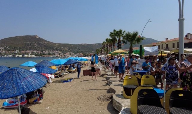 Foça sahillerinde havlulu eylem