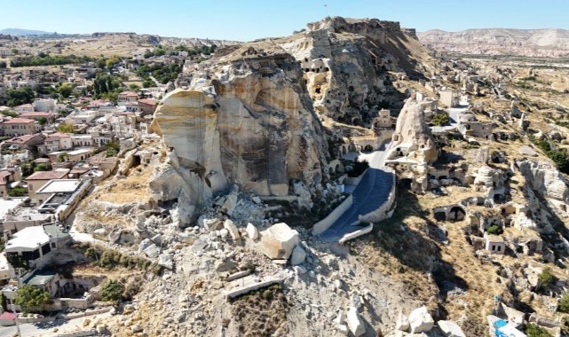 Kaymakamın talimatıyla boşaltıldıBölgede inceleme yapan Ürgüp Kaymakamı Ömer Coşkun, Kadıkalesi'nde bulunan kaya kütlesinin düşmek üzere olduğunu fark ederek, bölgenin boşaltılması talimatını verdi. Talimat üzerine bölgede bulunan 3 ev ve bir otelde konaklayan toplam 19 kişi tahliye edildi.Gece saatlerinde büyük bir gürültü ile kopan kaya parçaları çevreye saçıldı. Bölgede bulunan evlere kadar gelen devasa kaya kütleleri hiçbir can ve mal kaybına neden olmadı.Devasa kaya kütlelerinin düştüğü anlar da çevrede bulunan bir iş yerinin güvenlik kamerasınca saniye saniye kaydedildi.Olay sonrası alanda incelemelerde bulunan Ürgüp Kaymakamı Ömer Coşkun, yaptığı yazılı açıklamada şunları kaydetti:"20 Eylül 2025 günü Ürgüp ilçemizin Kadıkalesi mevkiinde yaptığımız incelemelerde ciddi bir risk tespit ettik. Hiç vakit kaybetmeden gerekli talimatları vererek bölgedeki evlerin acilen boşaltılmasını sağladık. Bugün gece saat 01.58'de ana kayadan kopan parçalar ciddi bir yıkıma yol açtı. Ama çok şükür ki, aldığımız hızlı tedbirler sayesinde tek bir vatandaşımızın burnu bile kanamadı. Eğer o evler boşaltılmamış olsaydı, bugün büyük bir felaketle karşı karşıya kalabilirdik. Bu olay bize bir kez daha gösterdi ki, doğal afetlere karşı tedbir almak, riskleri önceden görmek ve hızlı hareket etmek hayat kurtarıyor. Olayın gerçekleştiği anda AFAD, Emniyet ve İtfaiye ekiplerimiz bölgeye sevk edilerek güvenlik sağlandı. Ayrıca riskin devam etmesi nedeniyle ana kayanın hemen yakınında bulunan evlerde yaşayan vatandaşlarımızı ve bir oteldeki misafirlerimizi de güvenli bir şekilde başka otellere yerleştirdik. AFAD İl Müdürlüğü'müz ve Kapadokya Alan Başkanlığı tarafından hazırlanacak rapor doğrultusunda bundan sonraki süreçteki riskleri değerlendirip tedbirlerimizi ona göre alacağız."