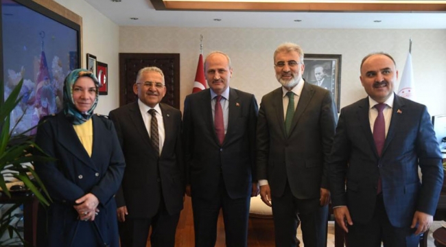 Büyükşehir Belediye Başkanı Memduh Büyükkılıç, Vali Şehmus Günaydın ile birlikte ilk ziyaretini Ulaştırma ve Alt Yapı Bakanı Mehmet Cahit Turhan'a yaptı. Görüşmede AK Parti Kayseri Milletvekilleri Taner Yıldız ile Hülya Nergis de yer aldı. Bakan Turhan ile yapılan görüşmede, Erkiler Havalimanına yapılacak olan yeni binalar ve Belsin-Şehir Hastanesi Raylı Sistem Hattı başta olmak üzere Kayseri’nin ulaşımla ilgili projeleri ele alındı.BALON TURLARI İÇİN ÖNEMLİ GÖRÜŞMEBaşkan Büyükkılıç, Vali Günaydın ile birlikte Sivil Havacılık Genel Müdürü Bahri Kesici ile de bir görüşme yaptı. Görüşmede Yeşilhisar-Soğanlı bölgesinde başlatılması planlanan balon turları ele alındı. Kayseri’deki turizmi çeşitlendirmek adına yapılması planlanan bu önemli çalışma ile ilgili Sivil Havacılık Genel Müdürlüğü’nden onay alındı.SAĞLIK TURİZMİNE ÖZEL ÖNEMBüyükşehir Belediye Başkanı Dr. Memduh Büyükkılıç,Kayseri için özellikle üzerinde durduğu sağlık turizmine ilişkin de Ankara’da temaslarda bulundu. Başkan Büyükkılıç, konuyla ilgili Sağlık Bakanlığı Bakan Yardımcısı Prof. Dr. Muhammed Güven ve Sağlık Bakanlığı Uluslararası Sağlık Hizmetleri A.Ş. (USHAŞ) Genel Müdürü Mehmet Ali Kılıçkaya ile bir görüşme yaptı. Görüşmelerde sağlık turizmini geliştirmek için yapılacak olan çalışmalar ele alındı.