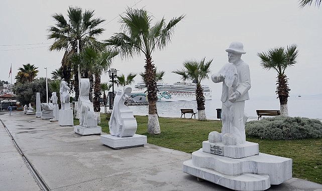 Kuşadası sahilinde müzik temalı heykeller
