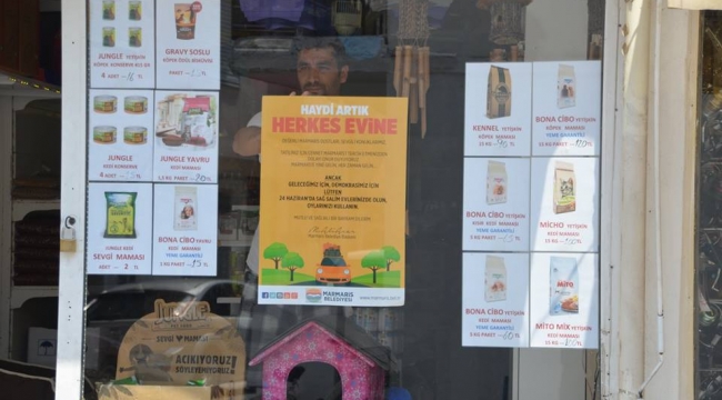 Marmaris Belediyesi, seçimlere bir hafta kala devam eden çalışma kapsamında raket ve billboardlardan sonra bu kez görevliler otellere ve işyerlerine giderek, “Haydi herkes evine” temalı posterlerden dağıttı. Duyarlı işletme sahipleri de çağrıya katılarak, görselleri işyerlerine astı.