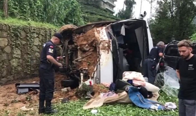 Rize'de tur minibüsü devrildi: 24 yaralı