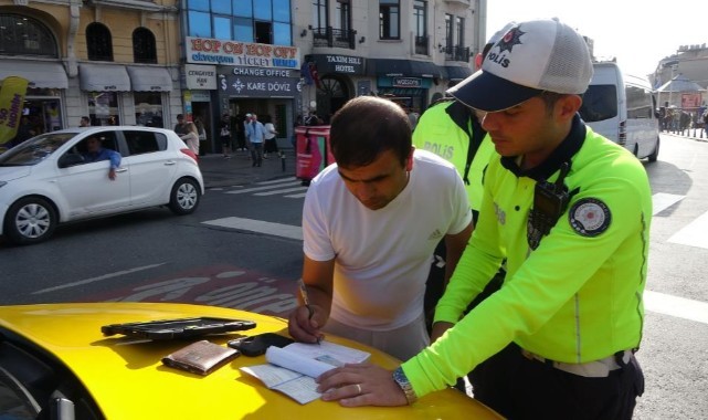 Taksim’de yapılan ticari taksi denetiminde kurallara uymayan sürücülere ceza yazılarak, araçları trafikten men edildi. Taksim’den Karaköy’e gitmek için Turist yolcudan 400 TL istediği belirlenen taksiciye ise 4 bin 64 TL para cezası kesildi.İstanbul Emniyet Müdürlüğü Trafik Denetleme Şube Müdürlüğü ekiplerince yolcu seçen, taksimetre açmayan ve kurallara uymayan taksicilere yönelik denetim gerçekleştirildi. Taksim’de yapılan denetimde, kural dışı hareket ettikleri tespit edilen taksi sürücüleri denetim noktasında durdurulup haklarında işlem yapıldı.