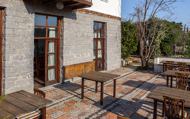 3 bin 250 metrekarelik arazi üzerinde kurulu olan turizm kompleksi; 8 odalı butik otel, restoran, konutlar ve çeşitli ek yapılardan oluşuyor. Taş ve ahşap mimarinin el işçiliği örneklerini taşıyan otelde, geçmişte birçok ünlü yönetmen, oyuncu ve yazar konakladı. Tesisin içinde ayrıca restoran, avlular, küçük dükkânlar, depolar, çamaşırhane ve bahçede yer alan sıcak su havuzu (hot tube) bulunuyor.