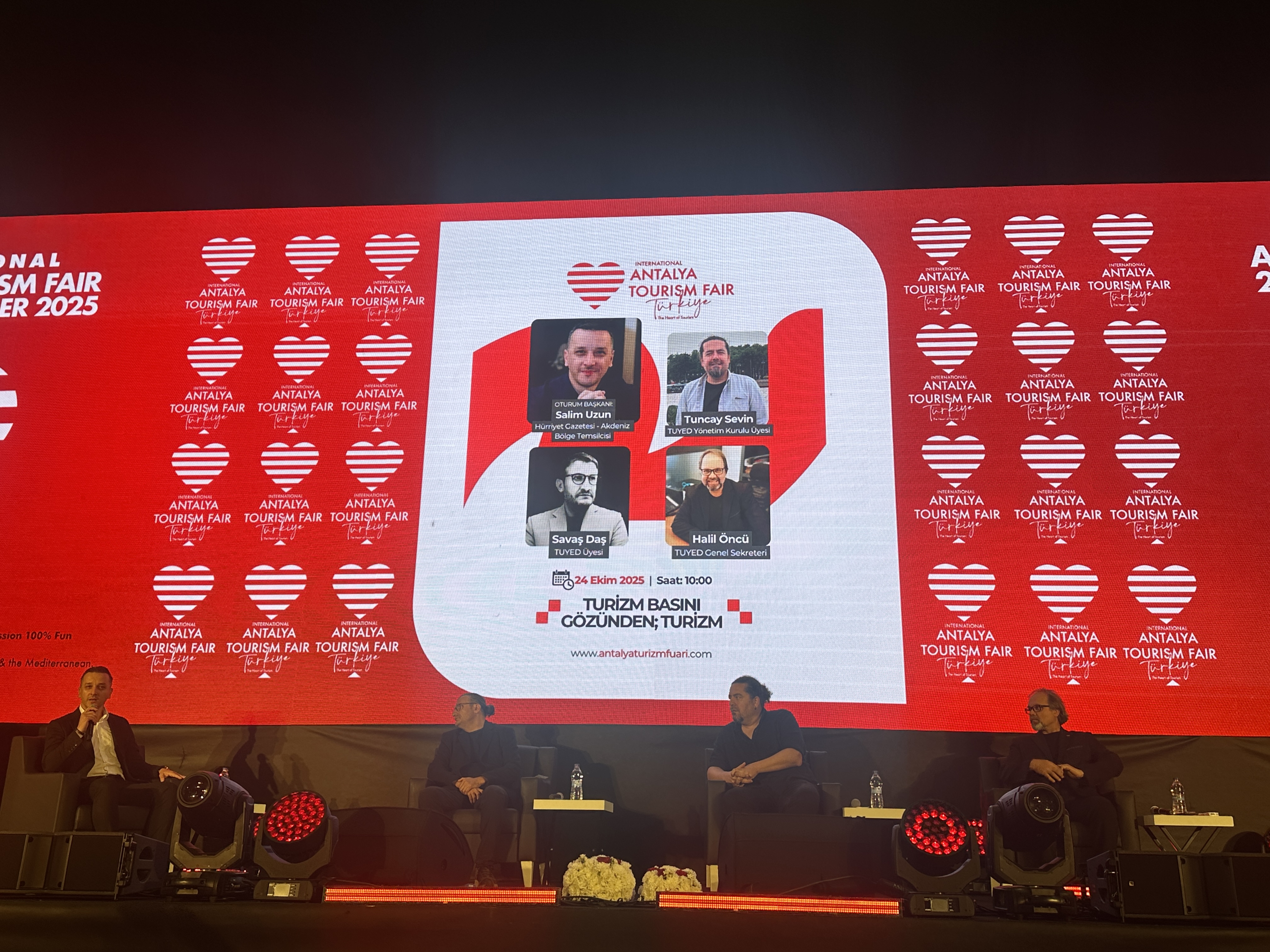 Antalya Turizm Fuarı (ATF2025) kapsamında düzenlenen ve moderatörlüğünü Hürriyet Gazetesi Akdeniz Bölge Temsilcisi Salim Uzun’un yaptığı “Turizm Basını Gözünden; Turizm” başlıklı panelde Türkiye Turizm Yazarları ve Gazetecileri Derneği (TUYED) Genel Sekreteri ve Turizm Dosyası Genel Yayın Yönetmeni Halil Öncü, TUYED Yönetim Kurulu Üyesi ve Tourism Today Haber Müdürü Tuncay Sevin ve TUYED Üyesi ve Turizm Ekonomi Genel Yayın Yönetmeni Savaş Daş söz aldı.
