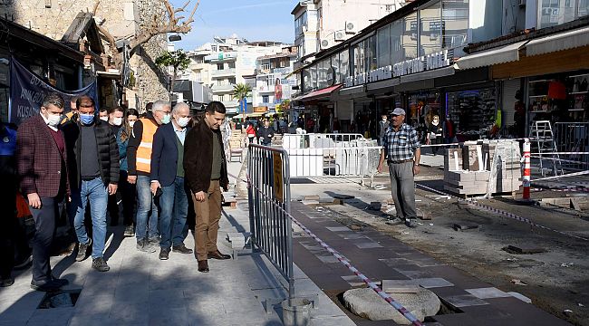 Kuşadası Belediyesi, Pandemi ile geçen 2020 yılının ardından yeni sezonu kente yakışır bir şekilde karşılamak için turistik çarşılarda Aydın Büyükşehir Belediyesi ile ortaklaşa başlattığı yenileme çalışmalarını sürdürüyor.