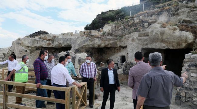 Nevşehir Kalesi çevresinde yer alan ve dünyanın en büyük kaya oyma yamaç yerleşim merkezinin bir an önce turizme açılması için çalışmalar yoğunlaştırıldı.