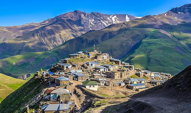 Kafkasların En Yüksek Köylerinden biri: KınalıkKınalık köyü, Azerbaycan'ın Kuba bölgesinde Şahdağ sıradağları ile çevrili, doğal güzellikleri ve konumuyla dikkat çekerken, Başkent Bakü'den sadece 230 km uzaklıkta olan köy, deniz seviyesinden 2.200 metre yüksekte, dağ zirvesinde olağanüstü bir manzaranın arasında yer alıyor.Köy, eşsiz iklimi ile tanınırken, sıcakkanlı halkı, tüm mevsimlerde turistleri karşılamaya hazır doğası ile de adeta unutulmayacak bir tatilin adresi oluyor.Tarihçilere göre, Kınalık köyü, çağımızdan önce kurulmuş olabilir. Köyde yapılan kazılarda bulunan muskalar, ok uçları ve bronz süslemeler, ilk yerleşimin erken Tunç Çağı'na (MÖ IV. bin yılın sonu) dayandığını gösteriyor. Aynı şekilde tarih sayfalarında köyün isminin de birkaç versiyona sahip olduğu belirtiliyor. Son olarak bölgedeki dağların, güneşin ilk ışınlarından kına rengiyle renklenmesi nedeniyle köye Kınalık adının verildiği düşünülüyor.Öte yandan Kınalık Köyü’nün mimarisinde tamamen iklimin ve doğanın etkisini de görmek mümkün. Genellikle birbirine yapışık olan evler, tamamen nehir taşından inşa edilmiş, düz çatılı, aynı zamanda avlu ve sokak görevi gören otantik bir mimari tarzdan oluşmaktadır.Bölgenin Soğuk İklimine Karşı Gelişen Kültür: Yünlü Şallar ve Çoraplar…Tarihten bu yana Kınalık Köyü, halı ve çantalardan yün şallara kadar yünlü ürünleriyle her zaman ünlü olmuştur. Kınalık nüfusunun bugüne kadar yaygın olan el sanatlarından biri, renkli desen ve tasarımlara sahip, koyun yününden yapılmış çoraplardır.Her aile, kalıp sırlarını nesilden nesillere aktardığından dolayı ürüne bakıldığında ürünü hangi aileye ait olduğu da açık bir şekilde görünebilir. Köylüler ayrıca birbirinden benzersiz kara koyun yünü şalların üretimi konusunda da dikkatleri çekmektedir.Eşsiz doğa imkânlarıyla adeta büyüleyici bir yer olan Kınalık Köyü’nde kalıntı orman alanları büyürken, buradaki ağaçları kesmek yasaktır. Köylülerin “Muqoz” diye tanımladığı bu ormanlık alanı kutsal sayarken, buraya yapacağınız bir Kafkas turunda dağ keçilerini görebilirsiniz.