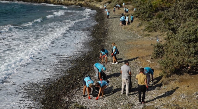 Marmaris Belediyesi Temizlik İşleri Müdürlüğü personeli ve iki yabancı tur şirketinin Marmaris'te yerleşik yaşayan rehberleri koylarda sahil temizliği yaptı.