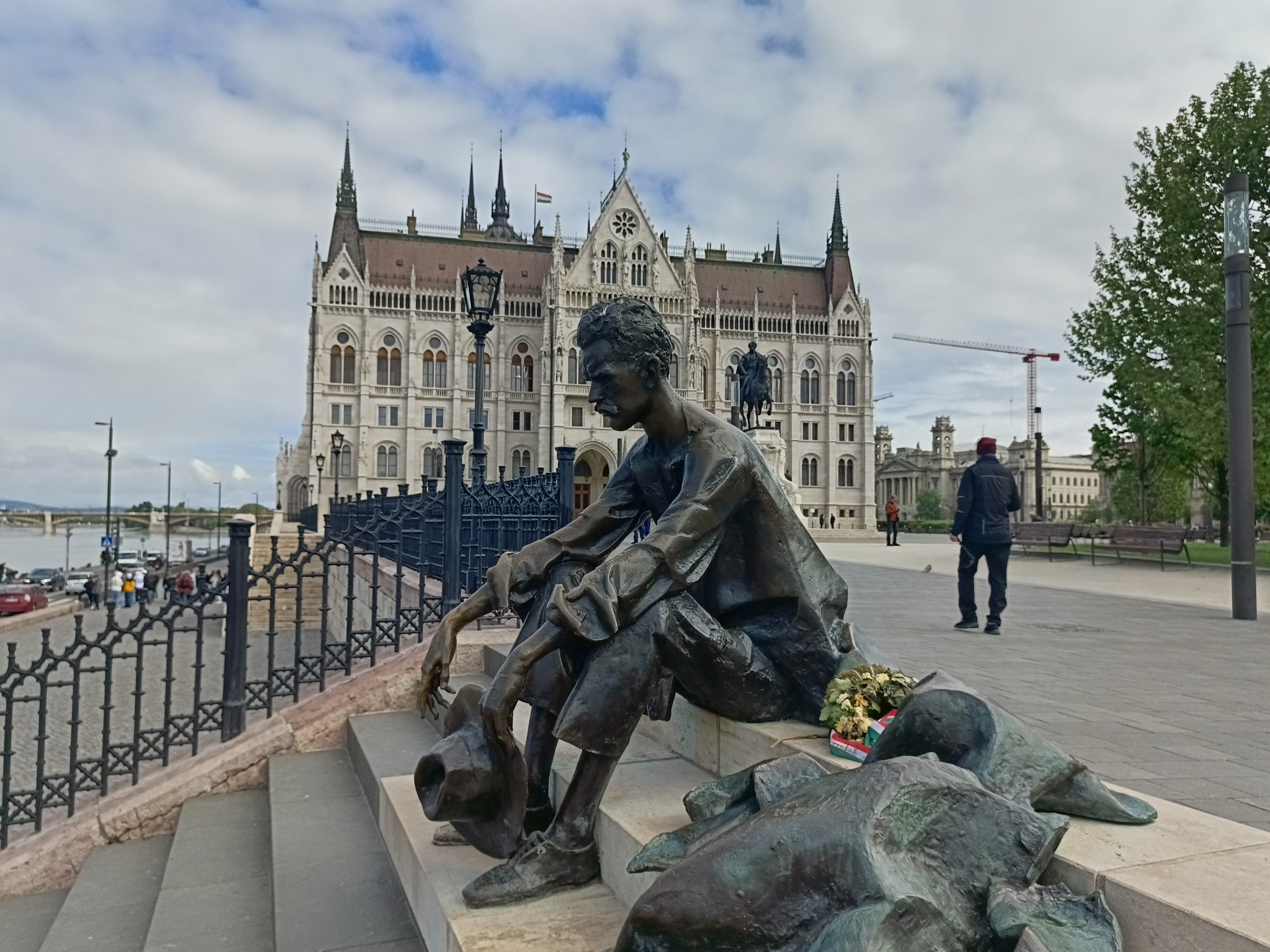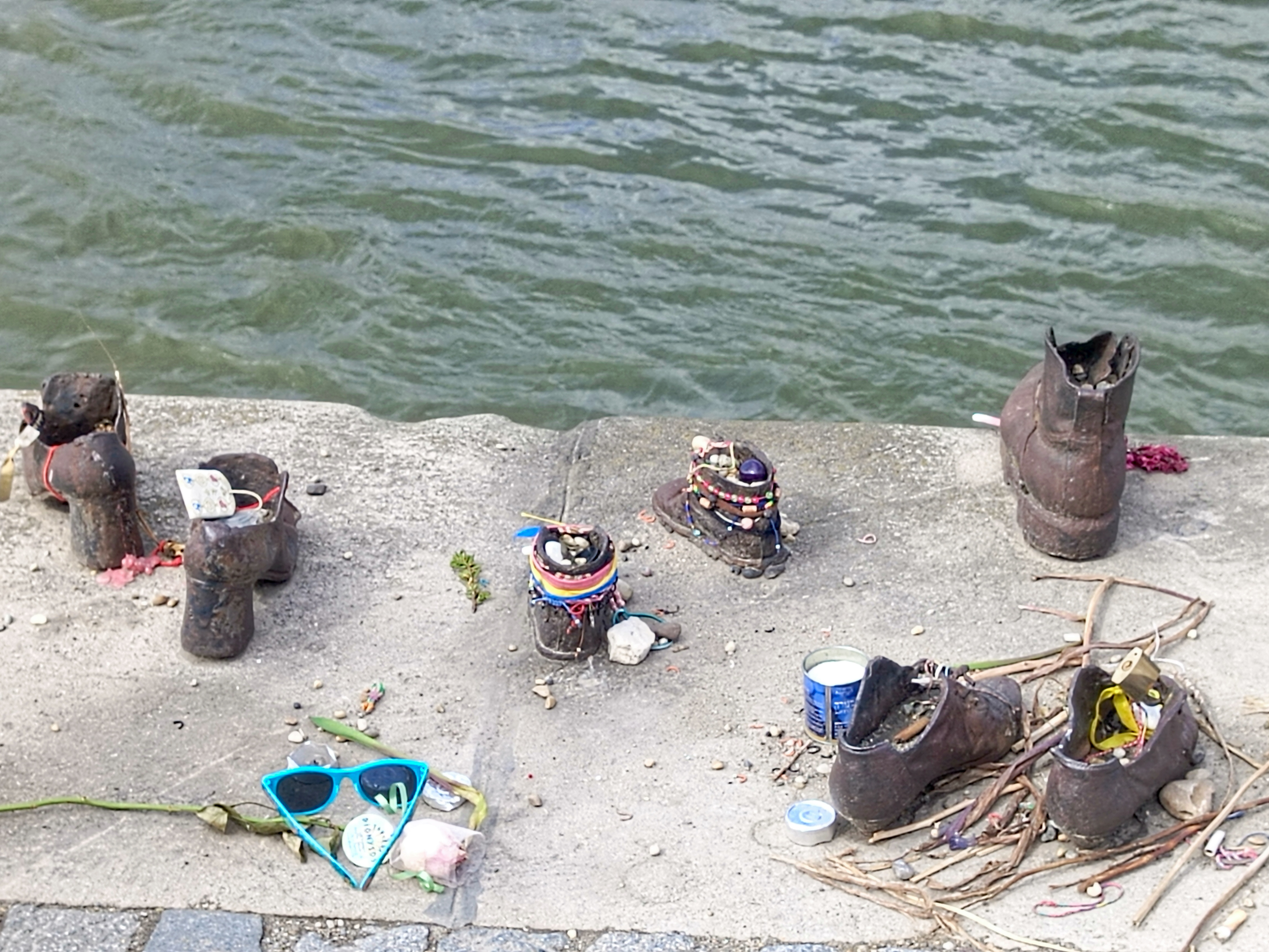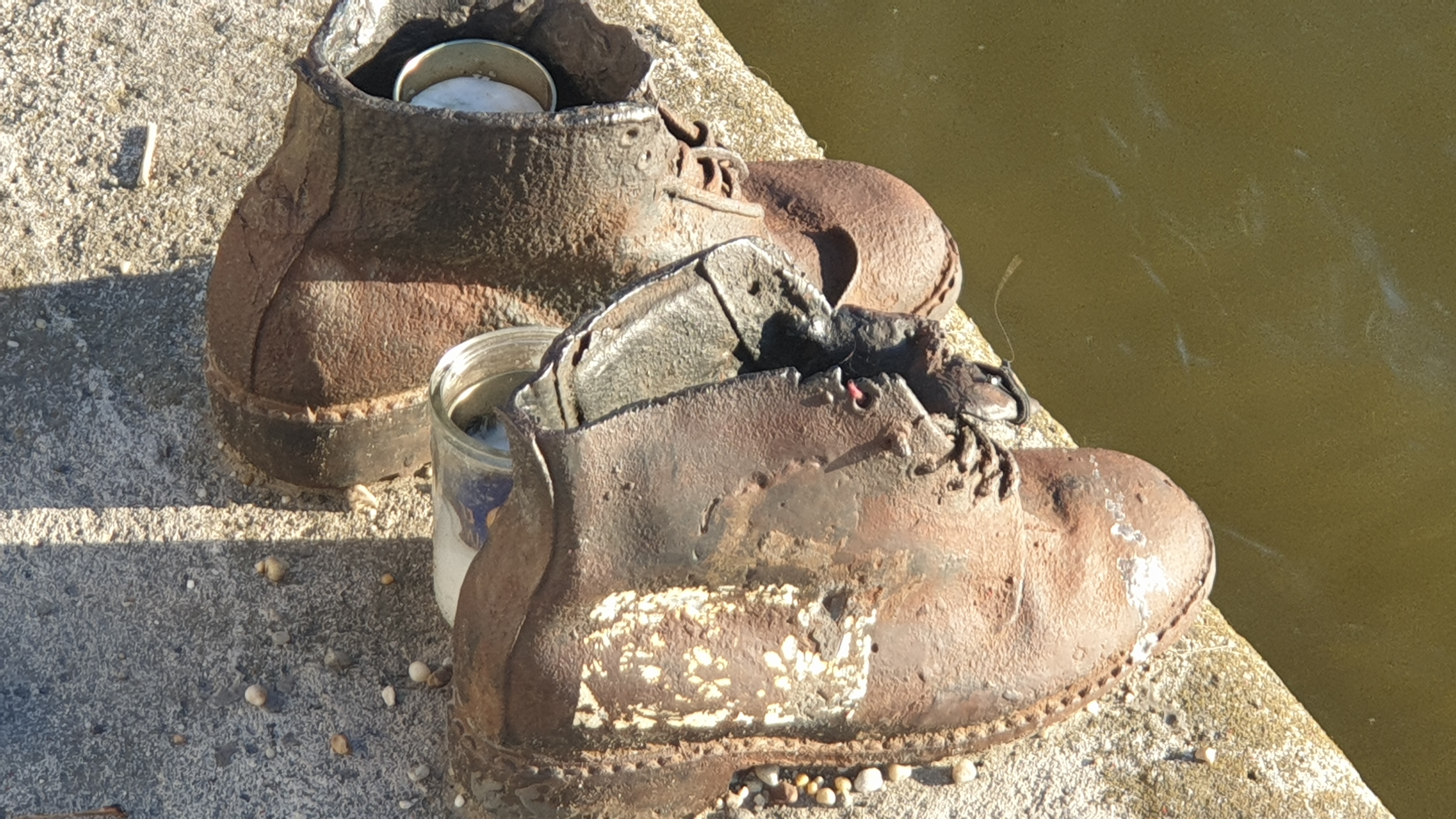 Peşte tarafında Parlamento binasının güney çaprazında demirden yapılmış ayakkabılar bulunuyor. 1940’lı yılların modellerinden oluşan, her biri gerçek boyutlara sadık kalınarak demir kalıplara dökülmüş 60 adet ayakkabı yer alıyor. Bu eserler, İkinci Dünya Savaşı sırasında Tuna kıyısında infaz edilen binlerce kişinin anısına Can Toğay ve Gyula Pauer tarafından yapılmış. Can Toğay film yönetmenliği, yazarlık ve oyunculuk yapıyor. Toğay, siyasi sığınmacı olan Türk anne babanın çocuğu olarak Doğu Almanya’da doğmuş ve Budapeşte’de yaşıyor. Gyula Pauer ise Macar bir sanatçı. Tabletlerde İbranice, İngilizce ve Macarca olmak üzere üç dilde yazılmış taştan bankta “1944-1945'te Arrow Cross (Oklu Haç Partisi / Nazi Partisi) militanları tarafından Tuna Nehri kıyısında vurulan kurbanların anısına 16 Nisan 2005'te kurulmuştur" yazmaktadır. Bir erkeğin çizmesi, bir kadının topuklu ayakkabısı ve çocuk ayakkabıları; katledilen insanların meslek, kimlik ve cinsiyetine bakılmaksızın nasıl bir vahşete kurban gittiklerini anlatmak için benzersiz bir eser niteliği taşıyor. İkinci Dünya Savaşı'ndan önce Macaristan'da yaşayan yaklaşık 800.000 Yahudi’nin yaklaşık 280.000'i Budapeşte'de yaşıyordu. Buna istinaden kente bazen "Yudapest" benzetmesi yapılmaktaydı. Macaristan'daki Yahudi cemaati Avrupa'nın en büyüğüydü; Budapeşte'deki sinagog, New York'tan sonra dünyanın en büyük ikinci sinagogu olarak kabul edilmekteydi. Macaristan’da Yahudilerin yalnızca dörtte birinin hayatta kaldığı tahmin edilmektedir.