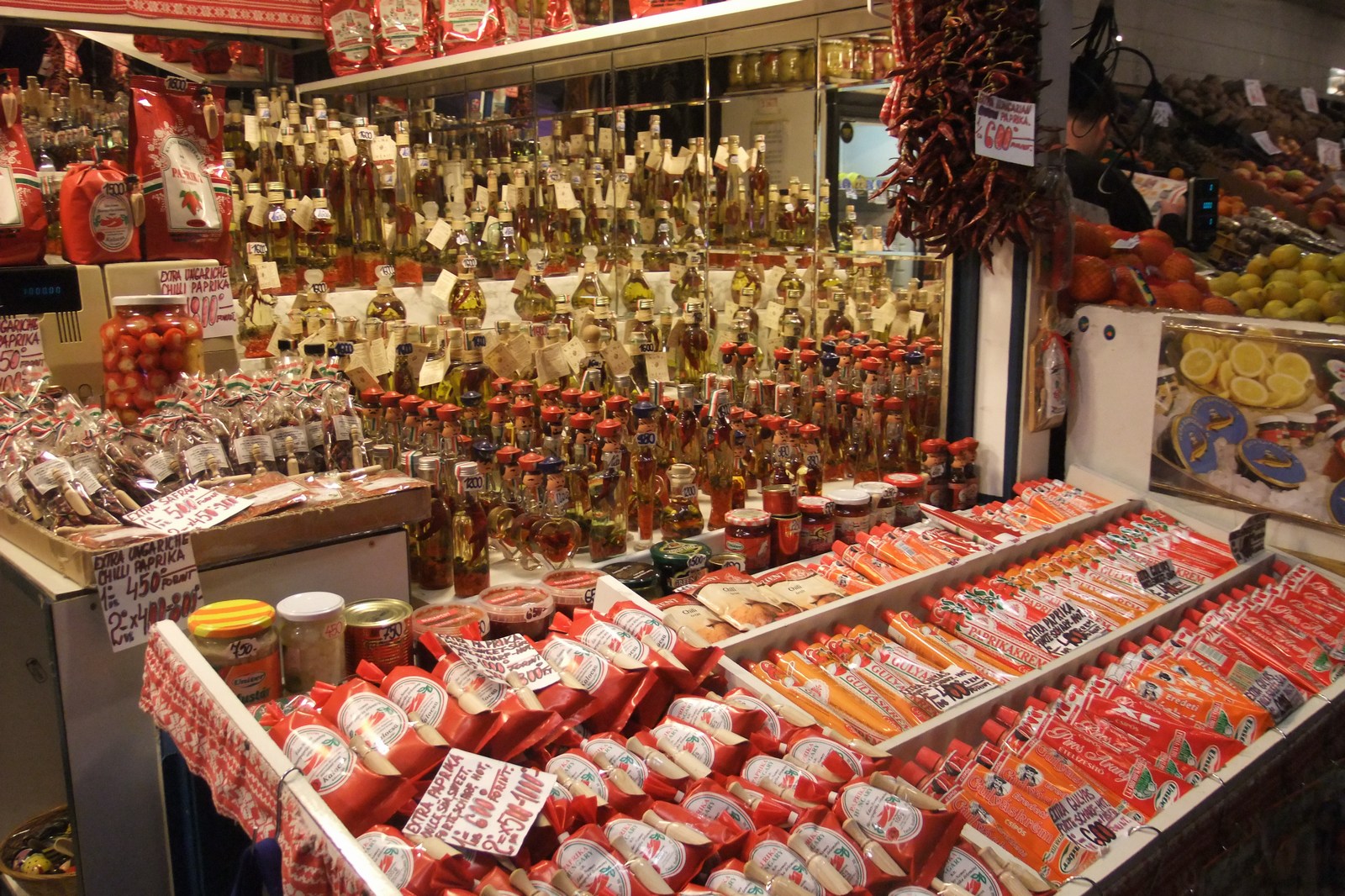Pazarda; sergilenen çoğunlukla yerel ve mevsimlik, çok çeşitli ve bol miktarda ürün bulunur. Macar mutfağındaki yeme içme kültürünün kullandığı malzemeleri bulabilir veya pişirilmiş hallerini burada tadabilirsiniz. Macarlara özgü zarif pastalardan bazılarını, yerel peynirler eşliğinde Macar şaraplarını tadabilirsiniz. Zemin katta taze sebze, meyve, et ürünleri ve baharatlar bulunur; dönüşte çantanızda meşhur Macar paprikası mutlaka olmalıdır. Tokaji şarabı, bal ve salam en çok tercih edilen ürünlerdir. Üst katta ise hediyelik eşya dükkanları ve geleneksel yemeklerin sunulduğu restoranlar/büfeler bulunmaktadır. Bodrum katında ise balık pazarı, turşucular ve süpermarket yer alır.