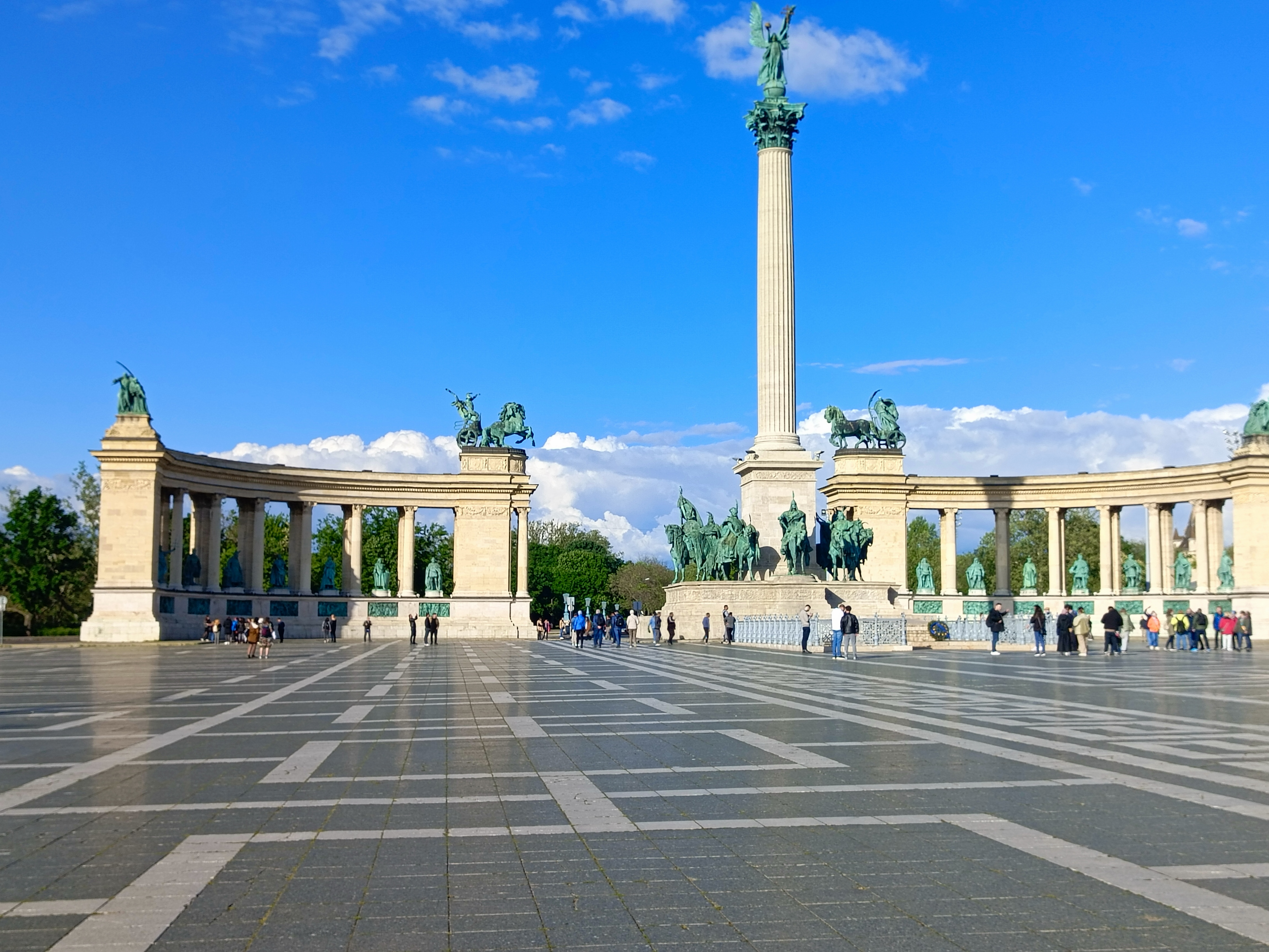 Andrassy Bulvarı'nın sonunda ve Şehir Parkı'na açılan alanda Kahramanlar Meydanı bulunuyor. Meydan ve çevresindeki anıtların inşası, Macaristan'ın 1000. yıl dönümünü anmak için 1896'da başladı. Meydana önden bakıldığında sağ tarafta Sanat Salonu, sol tarafta Güzel Sanatlar Müzesi ve ortada Milenyum Anıtı bulunuyor. Meydanda 118 metre yüksekliğindeki Milenyum Anıtı'nın kaidesini ve üzerinde Başmelek Cebrail'in bulunduğu 36 metre yüksekliğindeki sütunu görüyorsunuz